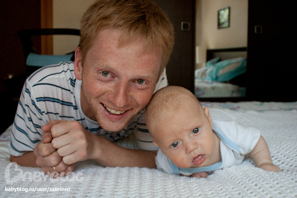 все никак руки не доходили написать!!!! огромное спасибо, кто поздравлял!!! очень приятно!!! и я так рада, что вы у меня есть. я всех читаю, но комментить все времени не хватает, да и не удобно качать ребенком и пользоватся сенсерной клавой. итак. ванюша!!!! 24 марта ночью в 2.07 пошла я в туалет и не добежала. решила, что описятся я не должна, значит отходят воды( как и в прошлый раз) и надо будить мужа и собиратся в роддом. через минуту схватка меня в этом убедила. пакеты я собрать не успела, поэтому быстро начали собиратся. хорошо, что список был. муж, молодец, все сделал сам, а я ходила со схватками(почти каждые 10-7 минуты). вызвонили моего папу. он очень боялся, что я рожу у него в машине. и не зря. ели успели в роддом. ванюша родился в 4.25!!! вес 3600, рост 53 на 37.5 неделе. для меня все прошло очень быстро и я от перевозбуждения не могла целый день заснуть. ощущения совсем другие, чем в первый раз. очень много чувств. наверное, потому, что уже не волновалась как будет дальше и не боялась ошибится или сделать как то не так, а просто наслаждалась материнством и любовалась малышом. он почти все время спал, почти не плакал. правда у него началась желтушка и его забирали на всю ночь под лампу и я плакала, что его надо отдавать ( ага, очень жадная я) , еще плакала ( это все гармоны и длительное отсутствие) что не вижу тимура. очень по нему скучала. очень хотела домой, к мужу и старшему сыну. и вот уже пролетел почти месяц!!! желтушка уже спала. уже стал человечком))) ночью очень часто кушаем, да и днем тоже. врачи говорили в роддоме, что это из- за того, что недоношенный. много сил уходит и быстро засыпает так и не наевшись. не держим тепло. но зато уже уверенно поднимает голову, когда лежим на животике, давно научился фокусировать взгляд. делаем гимнастику, но не долго, так как мерзнет. орем, когда моемся((( ну и не любим менять подгузник. наметился даже режим: утром спим с перекусонами до 10, потом бодрствуем часа полтора, потом спим до тех пор, пока старшенький братик спать пойдет, потом обратно бодрствуем ( мама носит на ручках и старается не допускать плача), потом засыпаем до 17-18, потом обратно полтора часа не спим. в это время стараемся покупать. ну и засыпаем где- то в 8. и с перекусонами до 3-4 спим. и это наше последнее бодрствование. я меняю памперс ( один раз за ночь), пью чай с йогуртом ( ванюша лежит в колясочке с открытыми глазками), качаю под отчаянных домохозяек. вот такая у нас жизнь. ой, забыла сказать, что глазки гниют((( на следующей неделе пойдем к врачу.