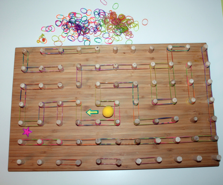 А уж как выяснилось, что здесь можно и лабиринт смастерить... Пришлось вводить обозначения из Kumon). Теперь шарик должен пройти от стрелочки к звездочке.
