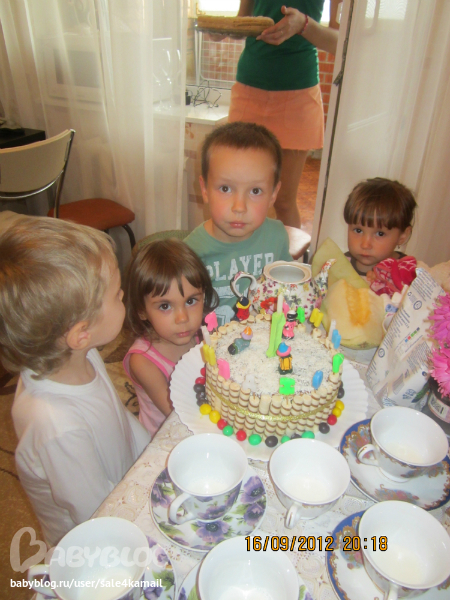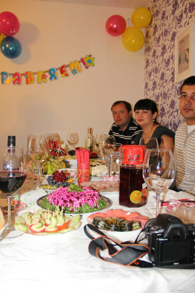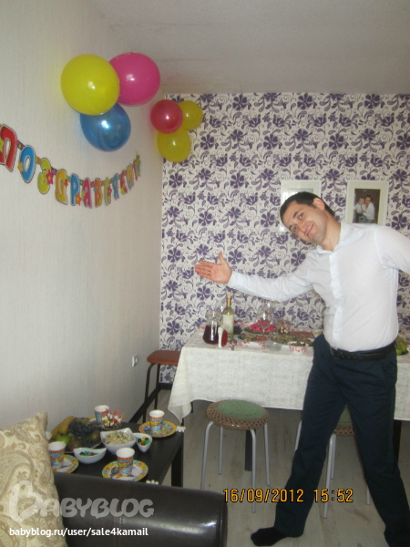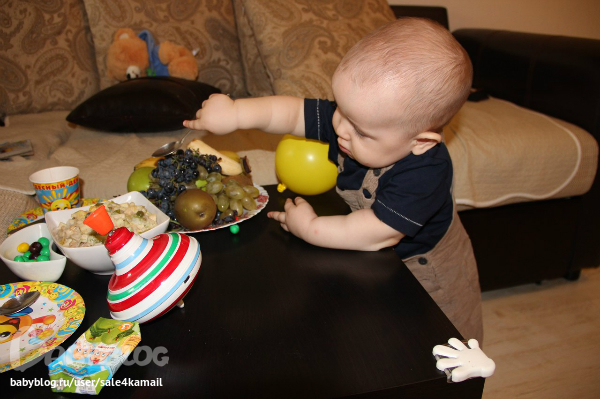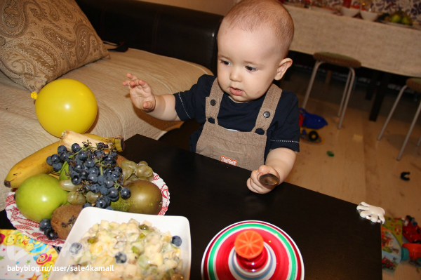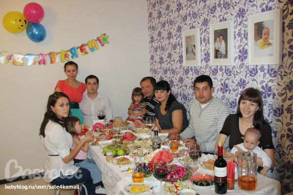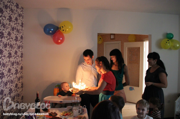 10.09.2012 исполнился год нашему счастью, радости в нашей жизни! Русланчику годик! т.к. др в понедельник , праздик по этому поводу отложили на 16.09.2012! переживала ужастно из-за мелочей!!!и вот за день до этого наваливается много нигатива!!я заказывала плакаты на дри девушка, которая мне их обещала (300 руб за плакат)просто пропала!!!не отвечала на звонки!!!зараза такая!!короче говоря д.р. был без именных плакатов! в итоге докупила простые за 50 руб))) за то к большой радости меню получилось вкусняшным! все получилось и все всем понравилось)))и мне!!!! были игры, поздравления и подарки! думала все займет часа 4 а в итоге гости разошлись только через 8-9 часов!!! уже ближе к полуночи!!!устала конечно, но все понравилось! еще больше стала любить сыночка! он играл с детьми, ходил! почти не требовал внимания!(а я переживала) ну и собственно фото!!!было 9 взрослых и 6 малышей в однушке!! тесно не было, уютно даже! 9 это с нами)