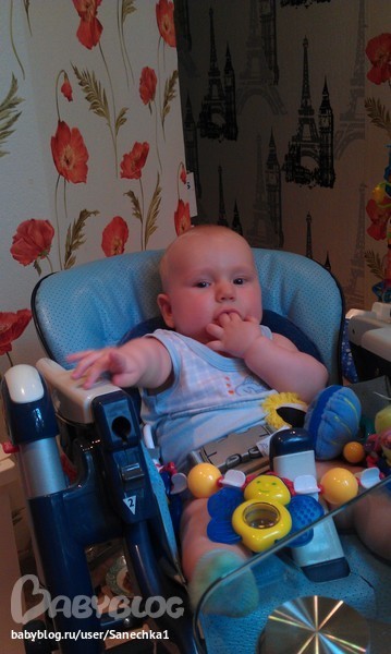 мы ползать пытаемся, но пока безуспешно, сидим, но не уверенно, на днях появился первый зуб, весим примерно 8400, рост 70