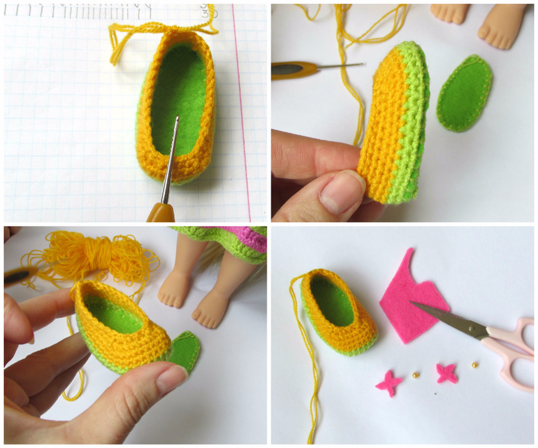 Глубину туфельки вы тоже можете выбрать самостоятельно, периодически примеряя ее на куклу.