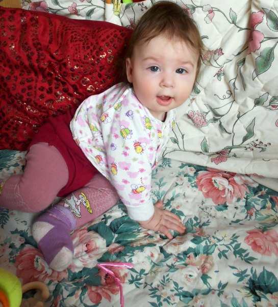 ура! вот и пол года! вес7.200кг. рост 66см. она у нас уже почти сидит,ползет и кувыркается зубов еще не наблюдаем!))правда болеем немножко -ну это поправимо!