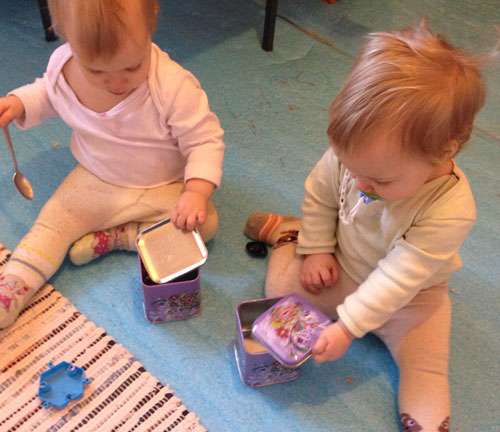 А это бонус - у нас как раз кончился весь вкусный чай и я дала дочам поиграться с чайными банками: