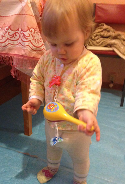 Сегодня распаковали подарок, который нам прислали бабушка и дедушка. Это ни что иное как маракасы! Дочам очень понравилось. Дашуля до сих пор бегает с ними и не хочет отдавать.