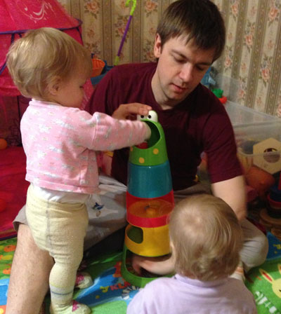 Сегодняшняя игрушка заняла детей не надолго. Суть простая: в башенку сверху кидается шарик, он скатывается вниз, после чего достается и бросается снова. Дети побросали чуть-чуть, потом просто разломали всю башенку :)