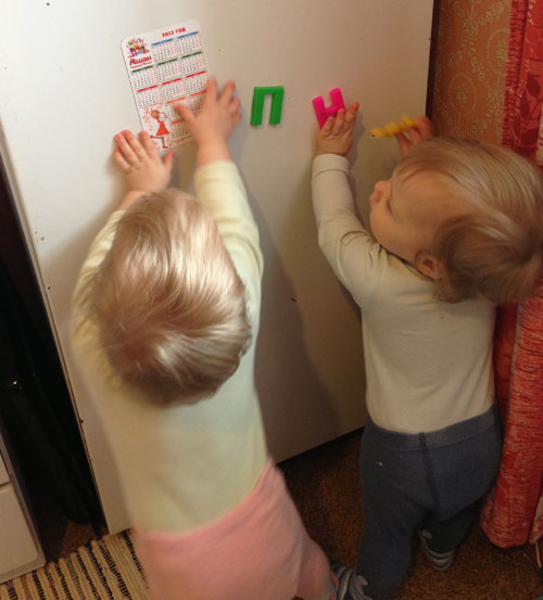 Вот и магнитная азбука пошла в дело. А заодно и все другие магниты опробовали на зубок. Теперь и холодильник у нас стал игровой зоной :)
