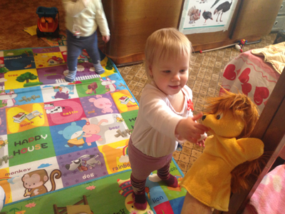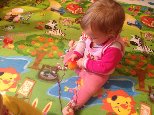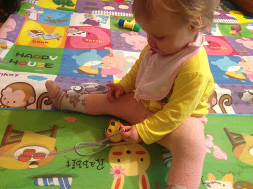 Даша вообще решила прилечь и прищепки ее не очень заинтересовали: