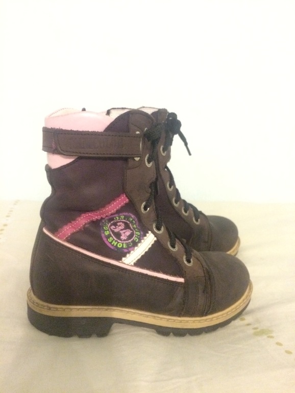 Осенние фиолетовые ботиночки для девочки. Натуральная кожа, теплые, толстая подошва. 500 руб.