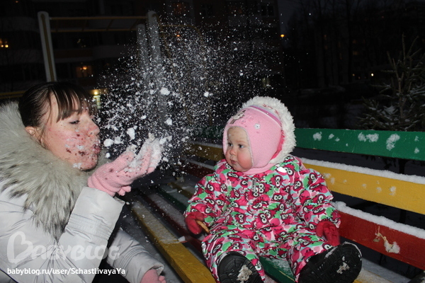 Мама-кудесница)) Марго думает,что снег-это пена для ванны и просит меня дуть на него))))