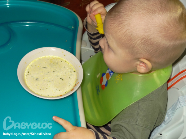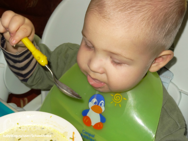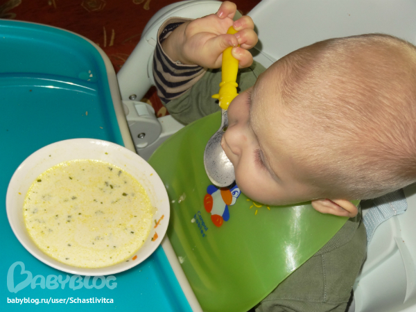Сам ест суп. Илюше почти 1,3 года.
