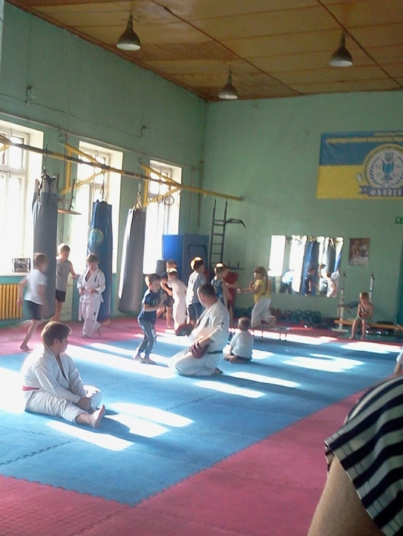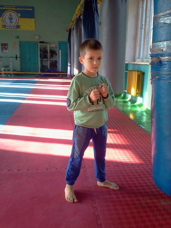 Вот Давид в нашем стареньком спорт зале, в спортшколе. Зато тренер у нас отличный, чемпион Европы и Украины