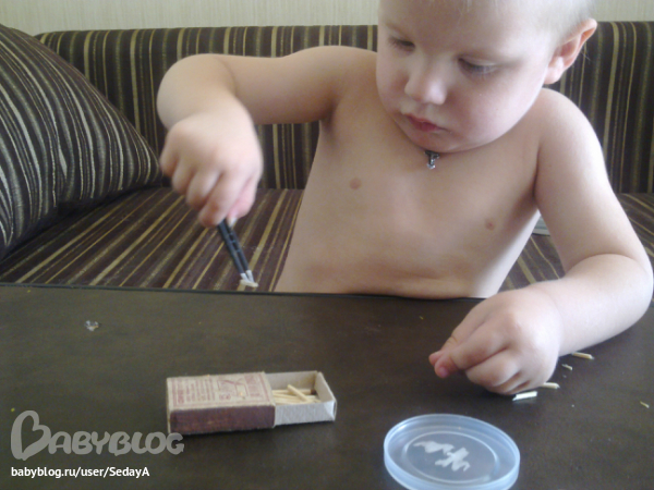 а потом обломки спичек пинцетом в коробку складывали) очень занимательное занятие)