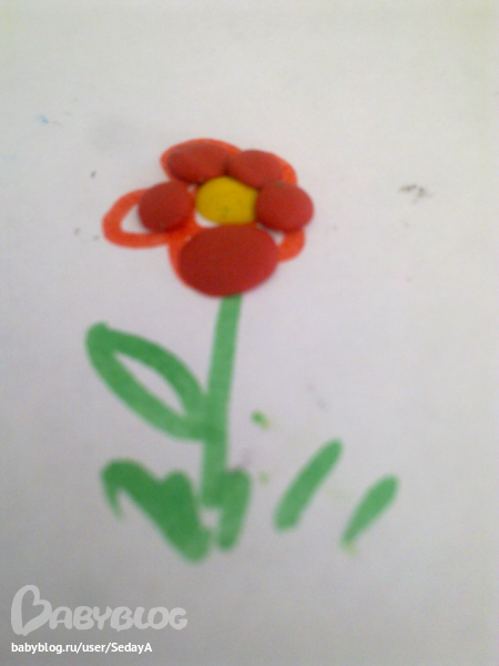 это у нас вчера на яблоньке "выросли" пластилиновые яблочки, на тучке дождинки, цветочек "расцвел", на мухоморчике крапинки "проявились" а у солнышка видимо "веснушка"))))) :