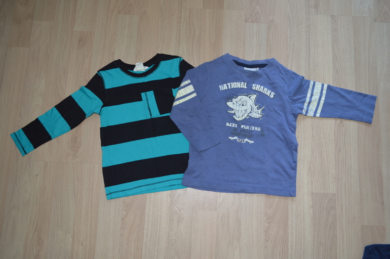 3.Футболки с дл.рукавом HM, р.86 , 100% плотный органический хлопок.По 250 за одну или две за 400 р. замеры : длина по спинке 33 см, от подмышки до подмышки 30 см, рукав от ворота 34 см.