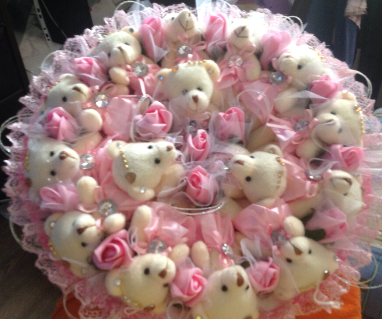Оригинальные подарки для ваших близких Фото1- экв.-2000 ( букет из 15-ти мишек и латексных роз диаметр 40 см). Фото 2 и3- экв-1300 ( букет из 9-ти мишек и латексных роз диаметр 32 см.