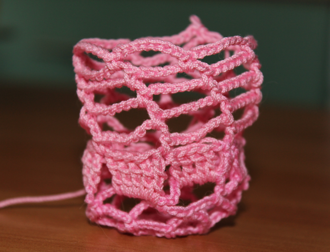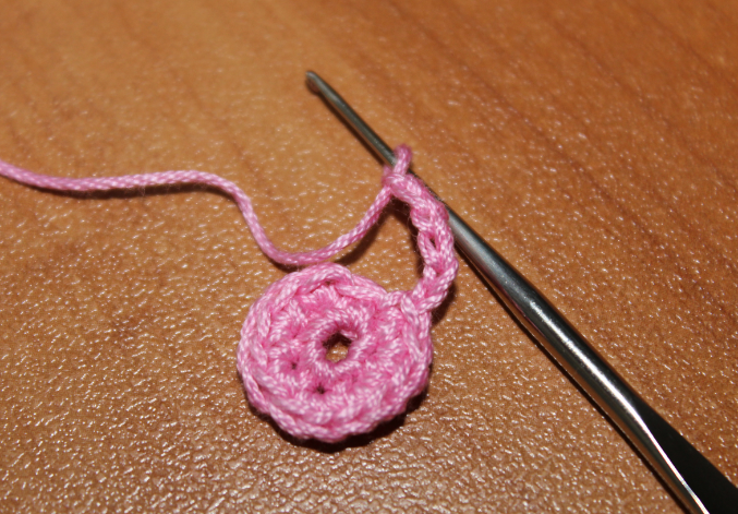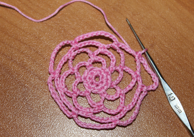 7р.- 3 в.п.,далее 5 ст.с 2 н. в каждый полукруг,закончить ряд соединительной петлёй.