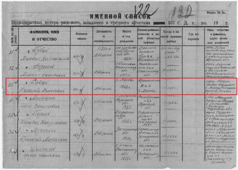 Танечка,мы тоже ничего не знали про Николая,только что пропал без вести на войне.Но интернет помог узнать некоторую информацию.На сайте мемориал нашли его,потом я почитала про 337 сд...и харьковский "котёл"...Посмотри,может удастся и вам.