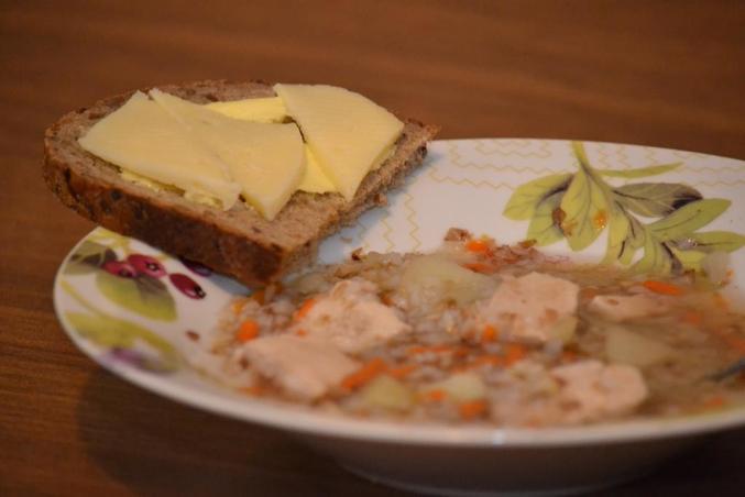 Как в детстве:) Гречневый суп и хлеб с маслом:))) Обожала это сочетание и обожаю:) И всю жизнь буду обожать:)