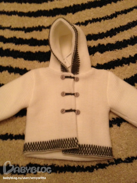 Приехала коллега из командировки с Парижу! :) Детских вещичек сами мы еще не покупали, но к нам в дом потихонечку начинают съезжаться пакетики с подарочками для маленького))) Вот от коллеги приехал такой свитерок на зиму, говорит не удержалась, за что ей ГРАНД МЕРСИ!)))