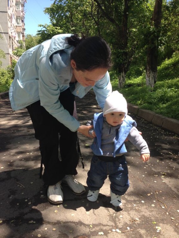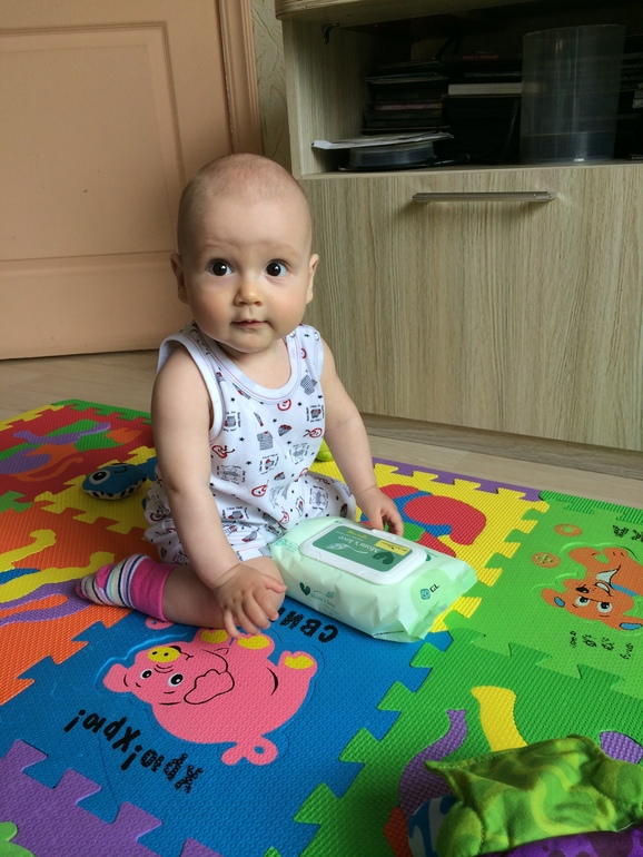 3. 14 мая встал у опоры и к концу месяца стал активно ходить вдоль дивана, шкафов, лавок. На улице перестал сидеть в коляске, смотрит с рук или топает ножками ( с поддержкой мамы) .
