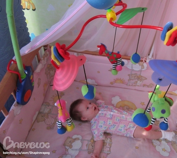 Наконецто купили доче мобиль на кроватку)))Дете довольное,лежит наблюдает)))А мама то как довольно что мелкой такая розвлекуха))))