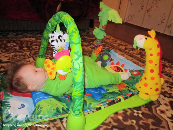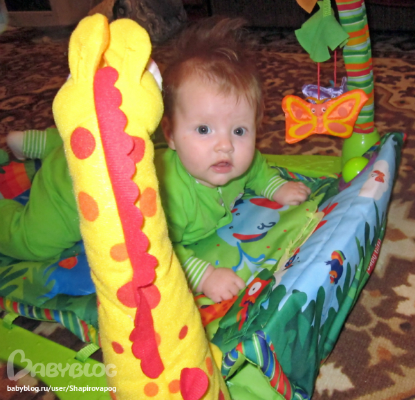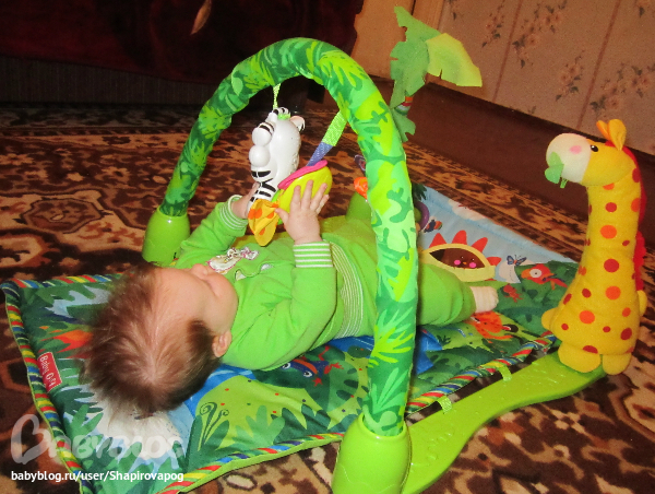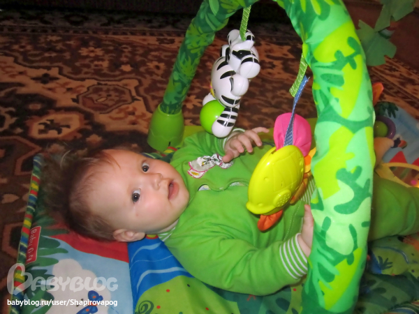 Мы благодаря коврику начали тянутся ручкой к игрушке в 1,5 месяца! Хорошая вещь, я считаю!
