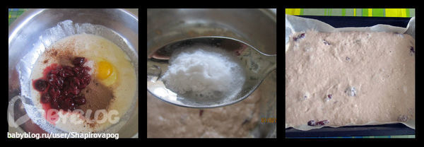 После прошедшего времени, добавляем в тесто соду, и выливаем на протвень тесто должно получится как густая сметана.