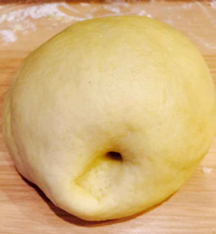 Нюансик. У меня оно чуть-чуть недовымешано. Я так люблю. Оно такое.. целлюлитное чуть, на фото видно. Можно еще помесить, и оно станет одородней и эластичней. Но по мне лучше чуть недомесить. Потому что ПЕРЕвымешанное оно потеряет рассыпчатость и нежность. Я так не лю. Решать вам.