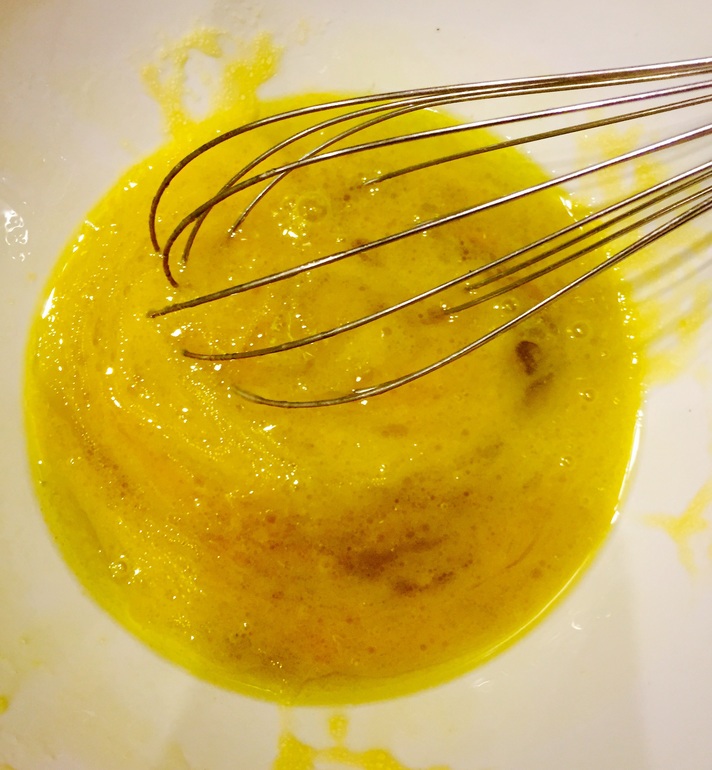 Это бабушка смешала яйцо и оливковое масло (50-50). Чуть взбили венчиком. Этим мы будем обмазывать пирожки для красоты.