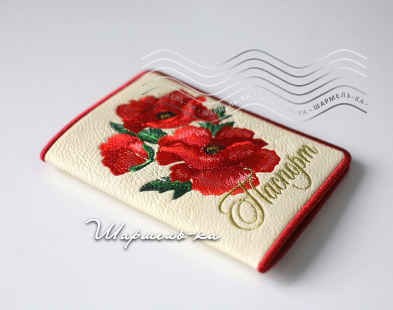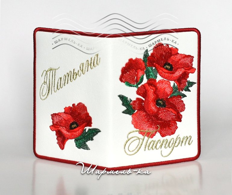 Обложка на паспорт вышитая именная "Маки. Татьяна"(любое имя!)