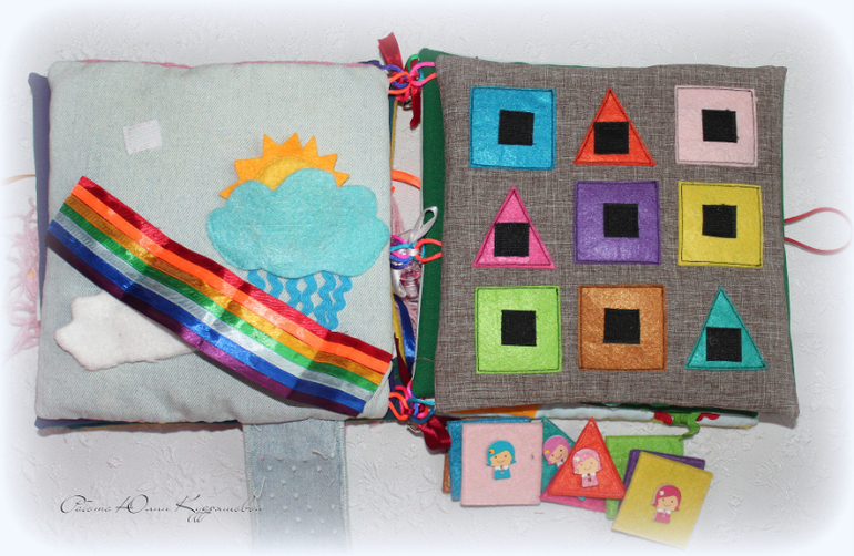 Уже на протяжении нескольких месяцев я никак не могу показать развивающую книжку, которую я делала в подарок дочке на 1 год. Сначала не было времени, потом я забыла, затем я была готова всё показать и рассказать, но не смогла найти некоторые составляющие. Потом нашла, но потерялись другие. Я, собственно, до сих пор не знаю, куда маленький монстр затырил белку,глаз и рот.А ещё яблоко и шишки))))))))))Поэтому я решила показывать её по частям, иначе этого не случится никогда)))))))))Итак, сегодня смотрим 3 разворота