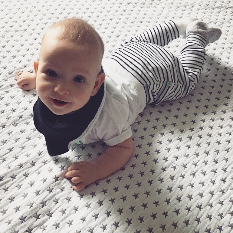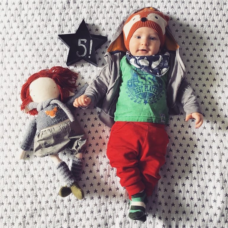 Арошке 5 месяцев, вылезло 2 зуба! Прошел слава богу мини кризис! Пришло время когда Арон стал достаточно взрослым, что бы спокойно лежать после пробуждения. Впрочем меня как то особо это не парило, ни в его 2 недели, ни в 3 месяца и ни в 5. Одинаково относилась к нему в любом его возрасте, что вообщем то упрощало мне жизнь: ездила куда захочу, ходила. Сейчас по магазинам с ним пойти - привычное дело. Хотя сегодня закатил мне грандиозную истерику - спать хотел.
