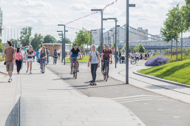 Метро Октябрьская. С одной стороны от моста — Музеон, с другой стороны Парк Горького.
