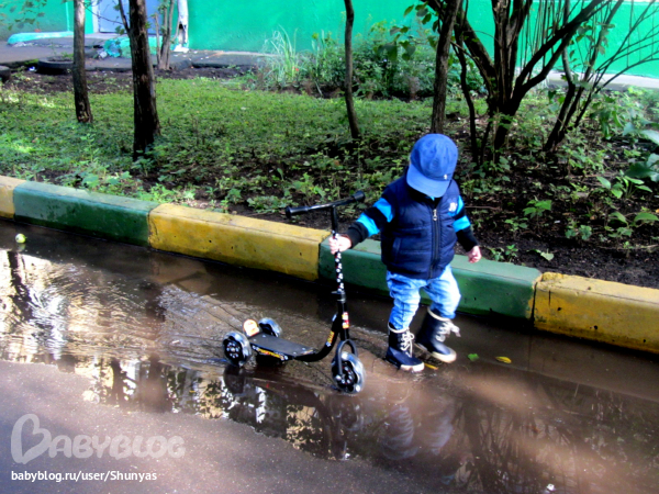 Саша и Мишаоставила я нашу ласточку в подъезде, с собой взяли только самокат. Прогулка прошла с 10.30 до 13.00 и еще бы погулял еслиб непроголодался