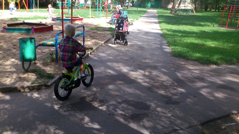 Какой красивый велик у вас! И Сашка уже без дополнительных колёс сам ездит?