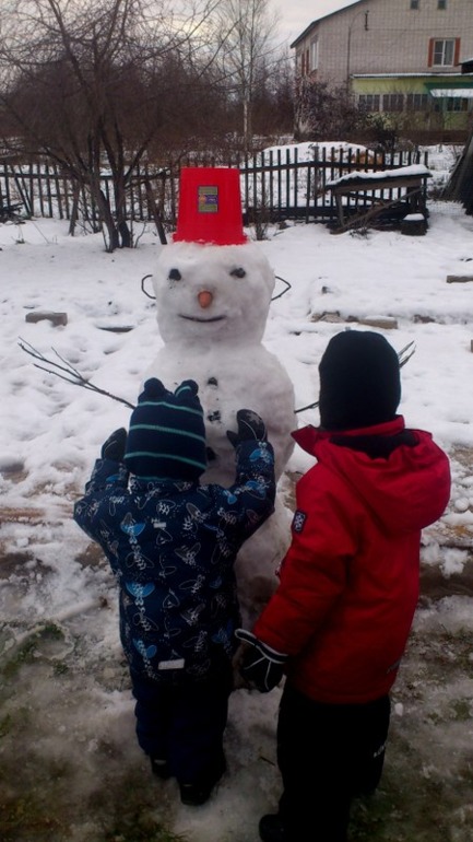спасибо) все тает. Деда наш спецом взял тачку и возил снег...чтоб снеговика сделать. Сашка с ним гулял. Мы с Мишаней к прабабушке ходили))))))