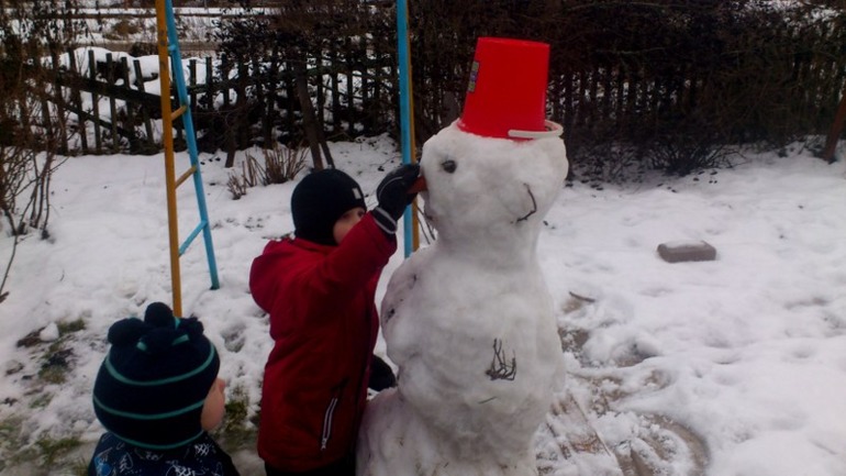 Еще сегодня был слеплен первый в этом году снеговик:)) Хотя у нас все тает и уже лужи везде