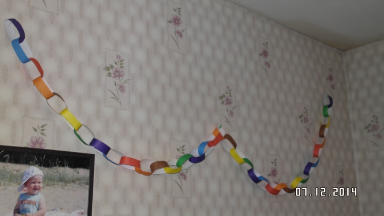 Саше очень понравилось делать гирлянду, особенно клеить)))