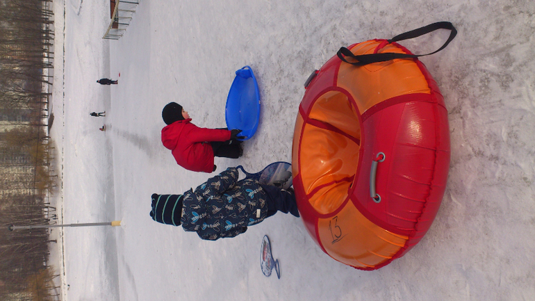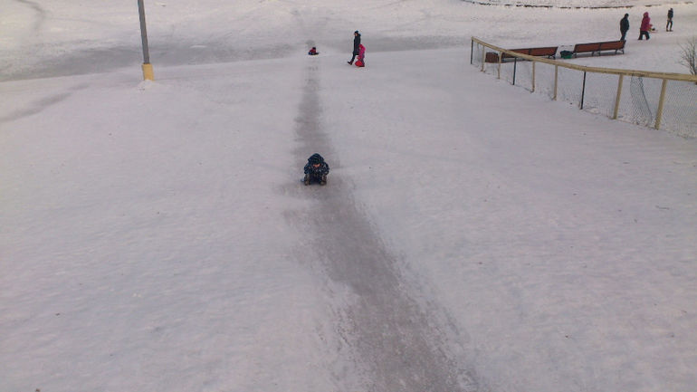 вот на видео я как раз на ватрушке одна скатилась и их снимала. Сашка тормозил тк там женщина проходила так то вниз аж уезжает))