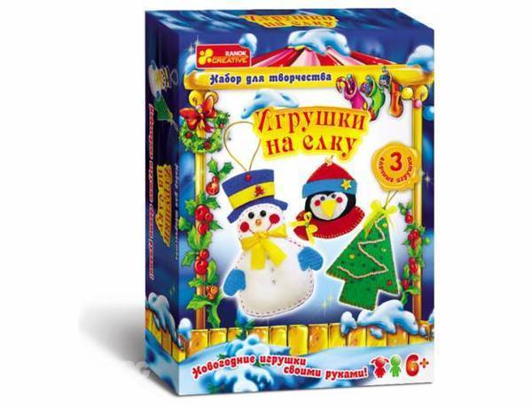 Из трех игрушек готовы пока две - ёлка и снеговик... Изначально, выбирали одинаковые подарки для трех возрастных групп на наших курсах 3-4, 4-5 и 5-6, т.к. утренник у всех общий, но такой набор и для шестилеток-то сложный, хотя и значится на коробке, как самый ранний возраст. Нас, конечно, предупредили, что мастерить придется самим родителям, но я-то рассчитывала, открыв коробку, достать оттуда готовые детали и склеить их по-быстрому, а тут - вырезать шаблоны, обвести по ткани, снова вырезать уже из ткани и шить, шить, шить... Зато наконец-то Даша увидела маму за рукоделием, а мне пригодились уроки мягкой игрушки и бисероплетения. Вцелом, приятно просто посидеть и смастерить новогоднюю игрушку своими руками, вот только завтра Новый год встречать, а дел ещё непеределанных ... Куплю готовый оливье и доделаю-таки третью игрушку ))