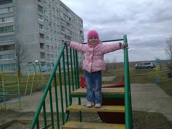 После солнечных деньков наступили серые и хмурые. Полинка рада любой погоде))) А Пашка спит, как всегда.