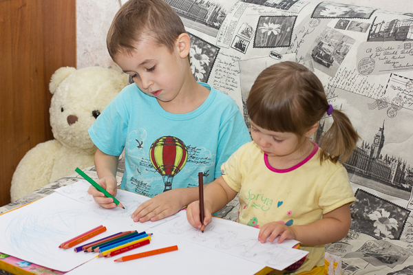 Затем предложила деткам разукрасить их собственных бумажных кукол и мы порисовали по-английски, повторив цвета карандашей, части тела человека, которые раскрашивали и название одежды.