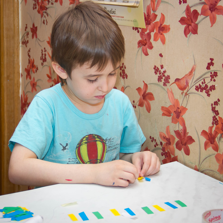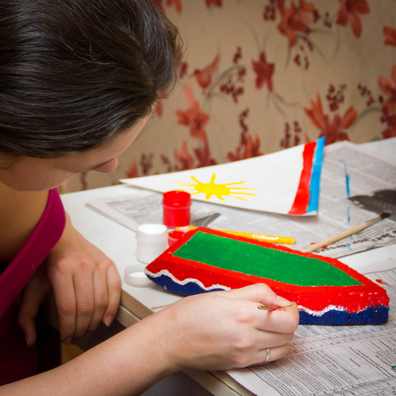 Затем Рома и Юна раскрашивали каждый свои основы в любимые цвета акриловыми красками.