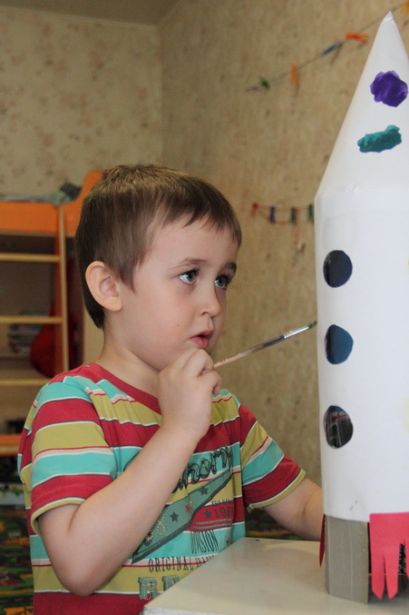 Далее пошли рассматривать ракету, ну и выполнять первое творческое задание - расскрашивать сие чудо природы!