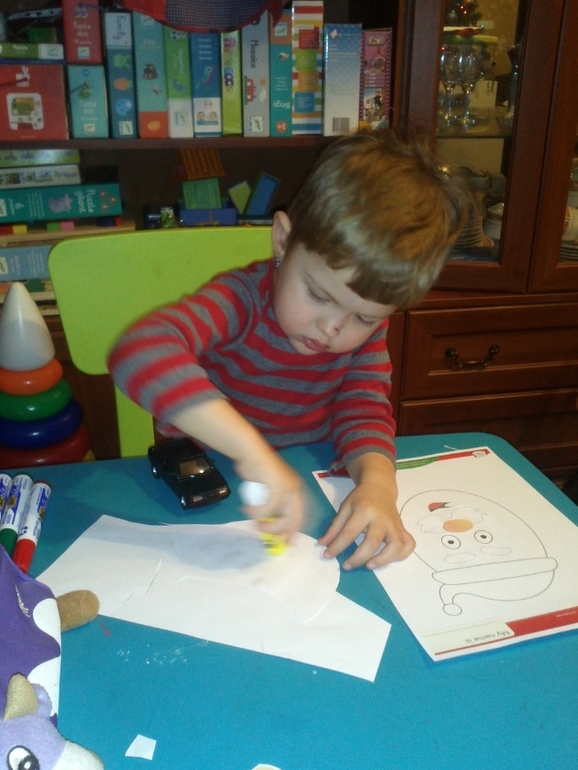 Очень мы любим аппликации, наверно, поэтому Никита уже потихоньку начинает понимать мои английские реплики во время этих занятий. Хотя, может, просто уже и так понятно, что делать нужно)))