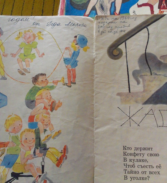 На одной из книг нашла дарственную надпись папе от Деда Мороза в связи с переходом из одной в другую группу в д\саду:
