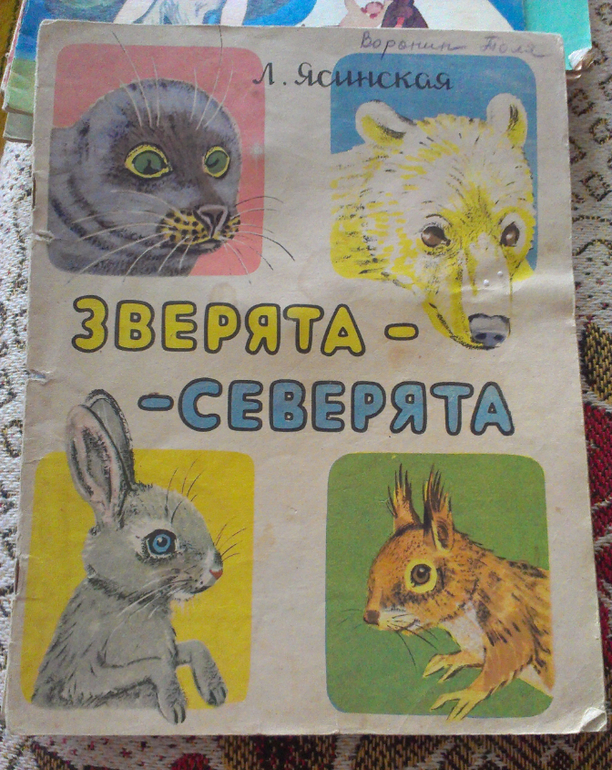 Зверята-северята: там на каждой страничке стишок и приделанный зверек, который можно шевелить и он "скачет" или "прыгает" или "качает головой". Помню, любила я их оживлять :) И как не оторвала? специально перелистала - все звери на месте!
