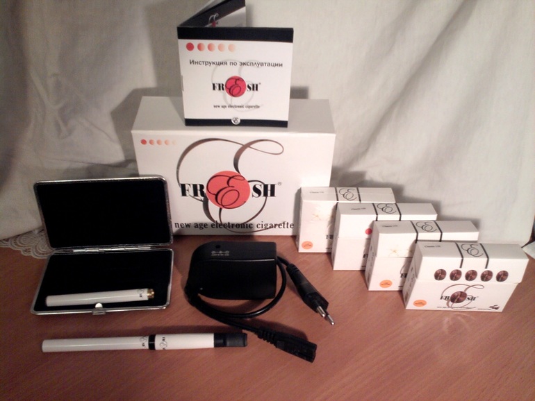 В комплекте всё, как было при покупке - сигарета с двумя насадками, зарядка, осталось несколько картриджей.