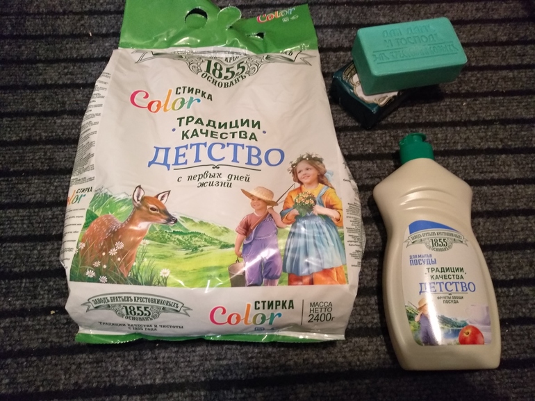 Набор для тестирования состоял из стирального порошка, средства для мытья посуды и кускового мыла.
