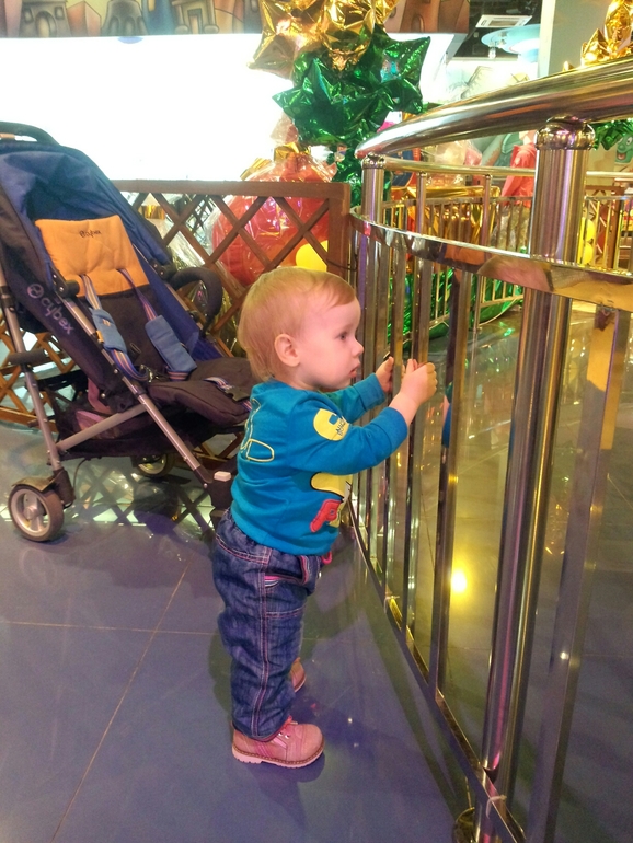 Ну пошла конечно сильно сказано. Трусиха жуткая, ходит только если ее закапюшон придерживать. Иногда отпускаю, может всю квартиру пройти. Но чуть качнет и все, сразу рев!!! Ну такой нежный цветочек, прям ужас:)